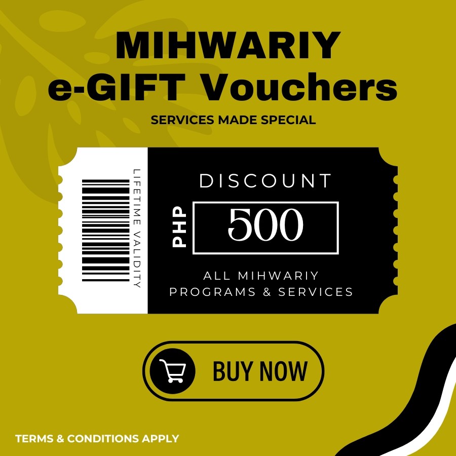 • Mihwariy e-Gift Voucher is now available in Imbento Masagana e-Commerce Site, Mihwariy Office, Accredited Partner Experts, Affiliates, and Authorized Representatives nationwide.