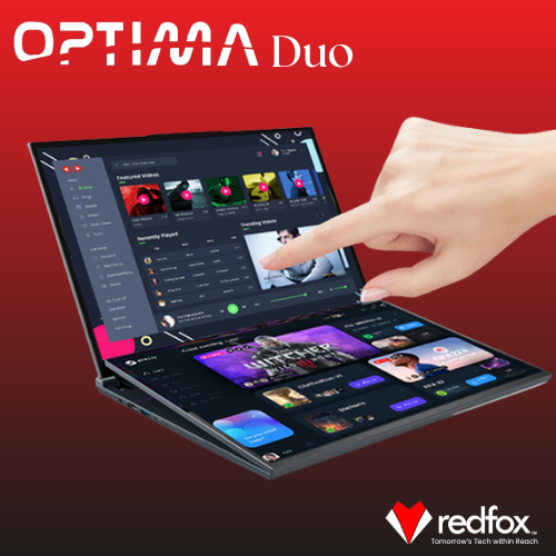 The Redfox Optima Duo is a dual-screen laptop built for modern professionals who juggle multiple tasks. The two screens enable seamless workflow, making it ideal for business, presentations, and productivity-focused users. With a touchscreen interface, it allows effortless multitasking.