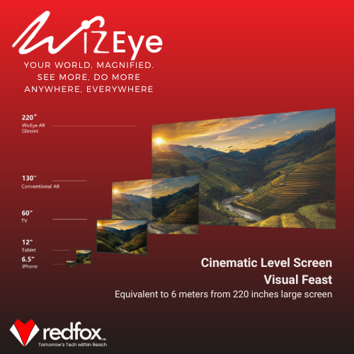 Experience the power of a 220” virtual display in sleek, wearable form. The Redfox WizEye brings your favorite content to life with a 52° field of view, 60 Hz refresh rate, and crystal-clear BirdBath optics. Enjoy immersive visuals and rich stereo sound, all from a lightweight design that connects effortlessly via Type-C.